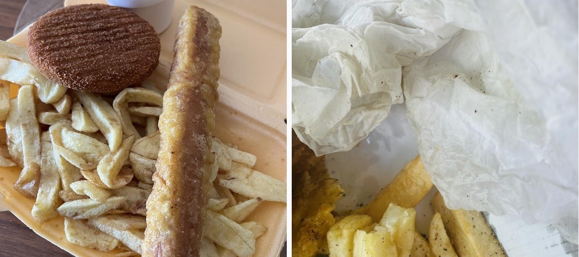 Ordered online, speedy delivery as always. I ordered regular chips, fish cake, sausage and curry sauce. Food great portion size and tasted absolutely delicious.Would highly recommend.